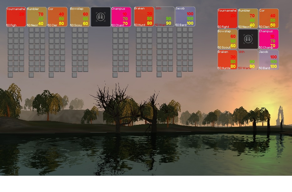 Wie gesagt, die sind nicht zufällig plaziert sondern hintendran oder unten und ja, in Deinem Beispiel würde es so aussehen als hingen sie in der Luft - der anhängende Screenie ist aus dem Editor und dient der Verdeutlichung, da sieht man meine "angehängten" Buffs (selbstgebuffte oben und die negativen Effekte hängen halt unten dran)...daneben zum Vergleich ein normaler Healer Helper.