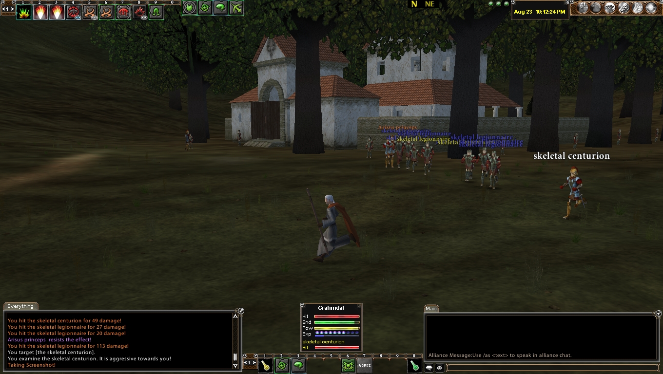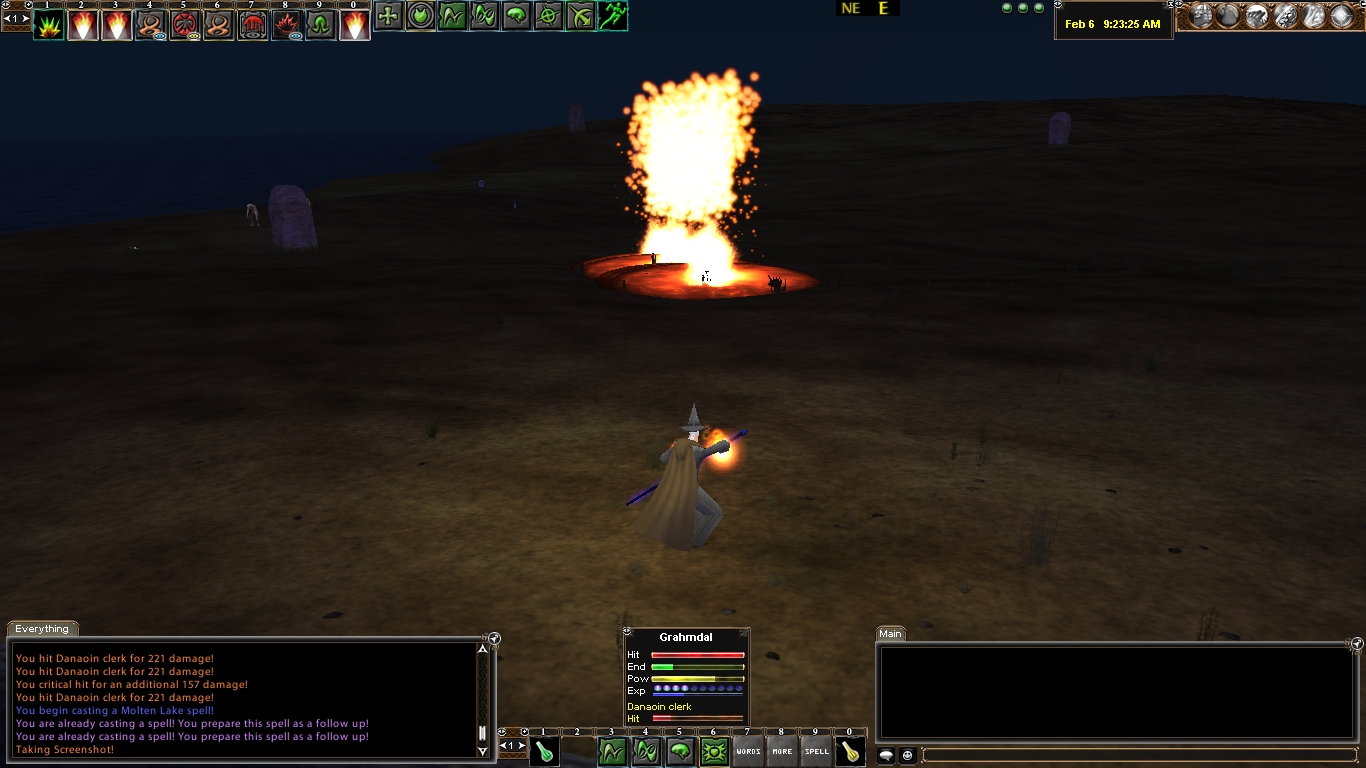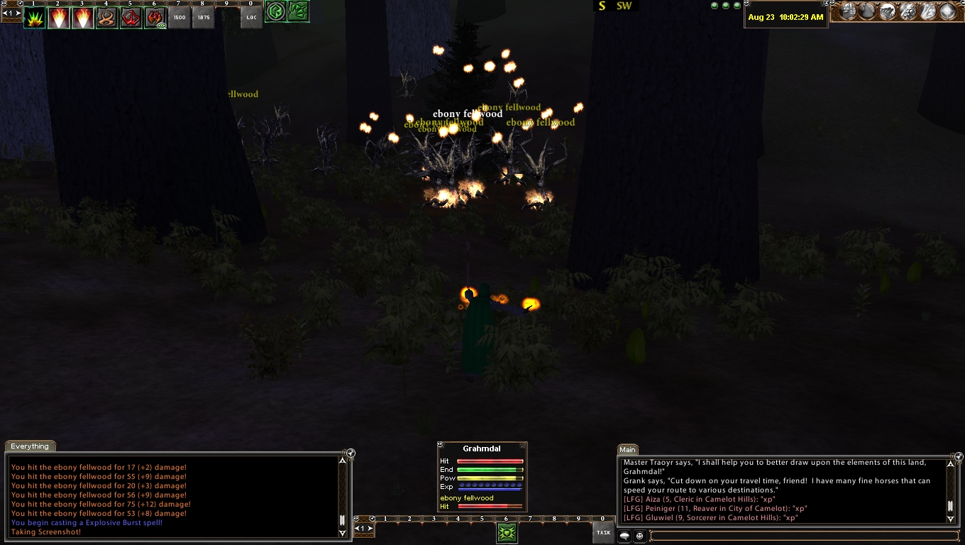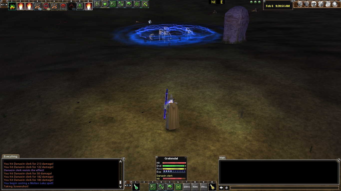 I spec'd to Earth at level 20, and started really enjoying it...in fact the xp from pulling the roman fort can really catapult a wizard to level 25-26 pretty quickly. (The 10 charge potions really help with doing this!) Honestly, Earth spec is pretty fun in a couple places, with having GTAE. You can atually stand behind the roman fort and pull almost the entire inside, then snare nuke as the skellys approach. Sort of a fun rush, and a change from bolt, bolt, dd, dd rest. My wizard is just about to hit 37, and here's a few good spots I've found for using ae snare nuke levelling... If anybody has any ideas where to go from 40-44 please let me know! This spec needs high density camps... 1-20 Just tasks...go fire spec IMO 20-25/26 Roman fort!!! Have some fun. 26-28 I just did trees and stalkers in forest sauvage...no really good AE camps 29 Bwgwls...sometimes they clump and you can pull 5 or so at a time...but usually wound up bolt, bolt, dot, kite 30-32 Frogs near hurb: once again, no brilliant AE camps here...but this is quick...just know the frogs move somewhere between regular speed and sprinting 33-36 Thidranki. Great levelling here...find the clumps. Pull by bolting the Oppungar mob, then AE snare nuke the whole camp...you'll get 5-6 mobs with group bonus. Just pop out at 34.9 and get enough pots to make 36. 36-40 Danaoin Clerks. Pull with a GTAE right in the middle of a pack, and proceed to snare nuke down...up to I think I've gotten 9 of em in a pull. 41-44 No ideas yet... 44-50 I'm going to try and do gobos...gtae right in the middle of the house...we'll see how it goes...this should pick up a lot at 46 with the last snare nuke spell. And some pictures...it's fun times...and the animation of the earth ae nuke is really beautiful: Happy nuking =) |