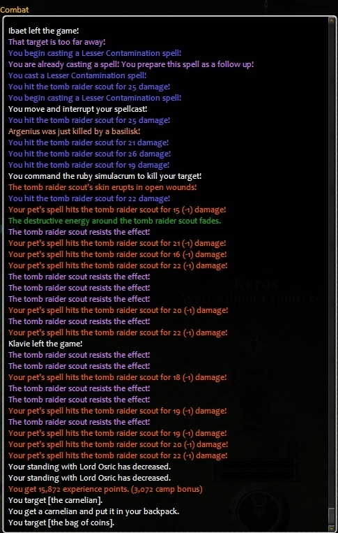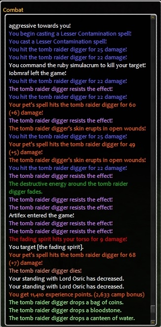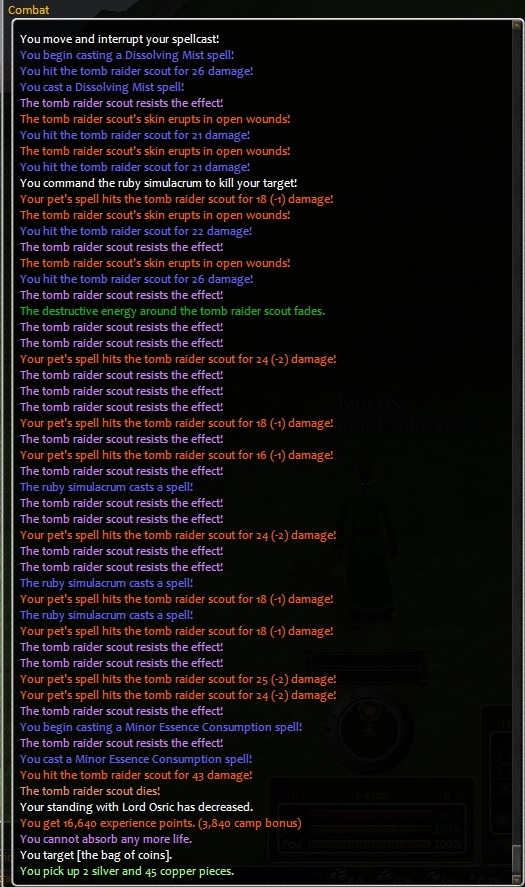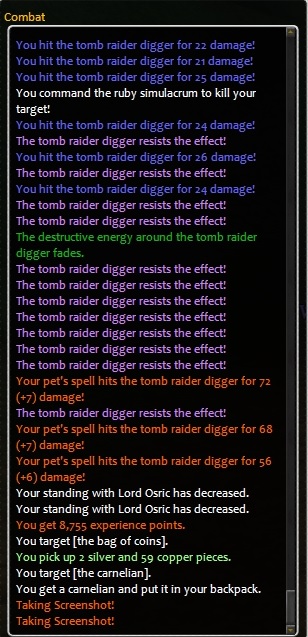 The spell used Lesser level 10 contamination, but no problem (rare resistance). Resistance was on the attack spells of the pet Ruby Simulacrum (level11). Me level 13 , mobs yellow and orange. Problem seen in play with the help of Sathariel. Thank you... |