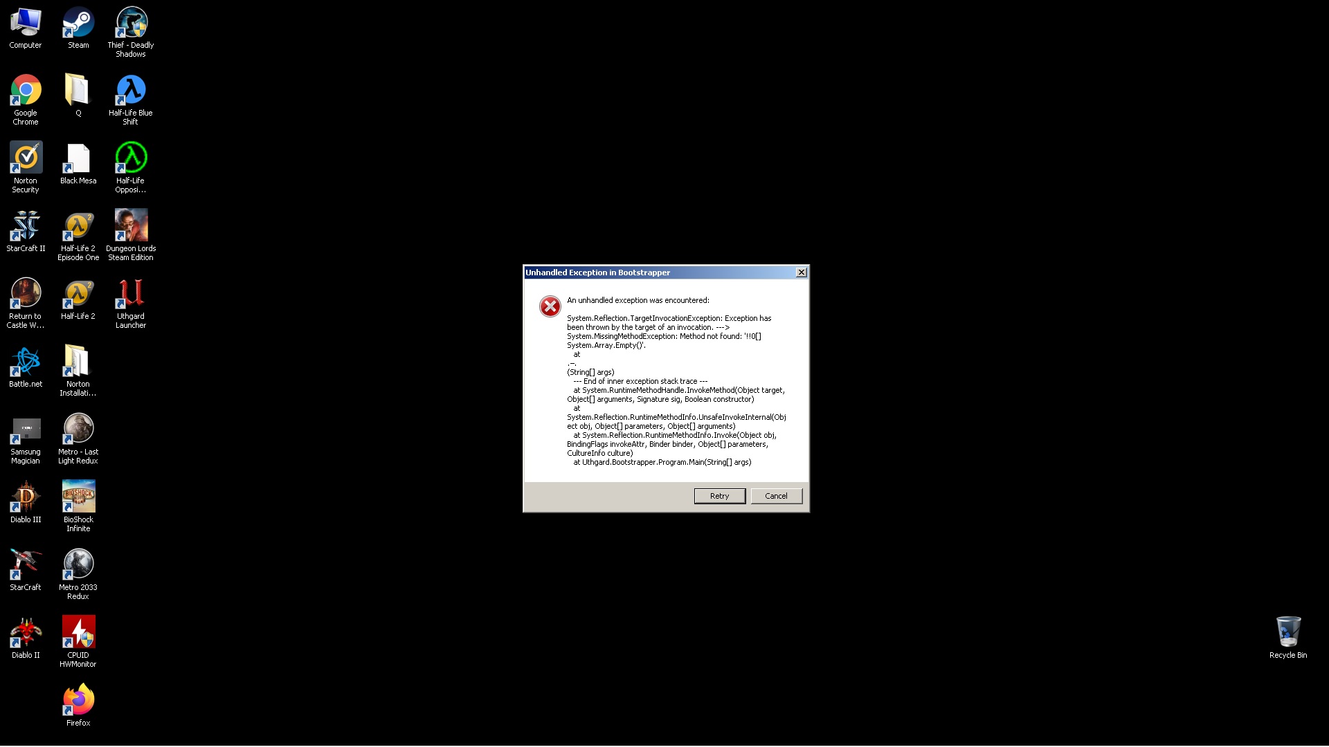reinstalled gameand now it won't load. all i get is this screen shot. edit: windows 7 64 bit |