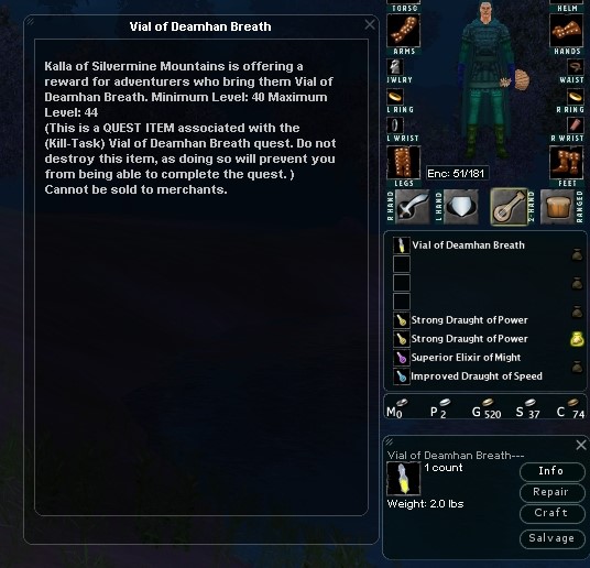 Also, there are a number of items you have on here which are 'new' but were not listed in the file Abydos provided. How do you know these have been placed in the game? For example Fenrir Tracker Paw / Galagore...yes the npc gives the dialogue, but I was assuming it was a mistake of some sort that this was added as this item was not included in the file Abydos provided of quests added to the game. I would include in this category: Jeweled Shaman Totem Fenrir Tracker Paw Cockatrice Feather Red Eyes Aurora Corpse Troll Teeth Malefic Tooth Spirit Stone Vial of Ghastly Vapors Runemaster Sealed Page Ice Shard Ghostly Necklace How do you know these have been added? It would be fantastic if they are in, at one point I was farming for some of these items because these were included on the original very old Issue Tracker report as being missing in game. However I did not get any to drop. Then I reread the "NEWS" thread where Abydos mentioned how to find the ones he added to game, and none of these are on that list. |
