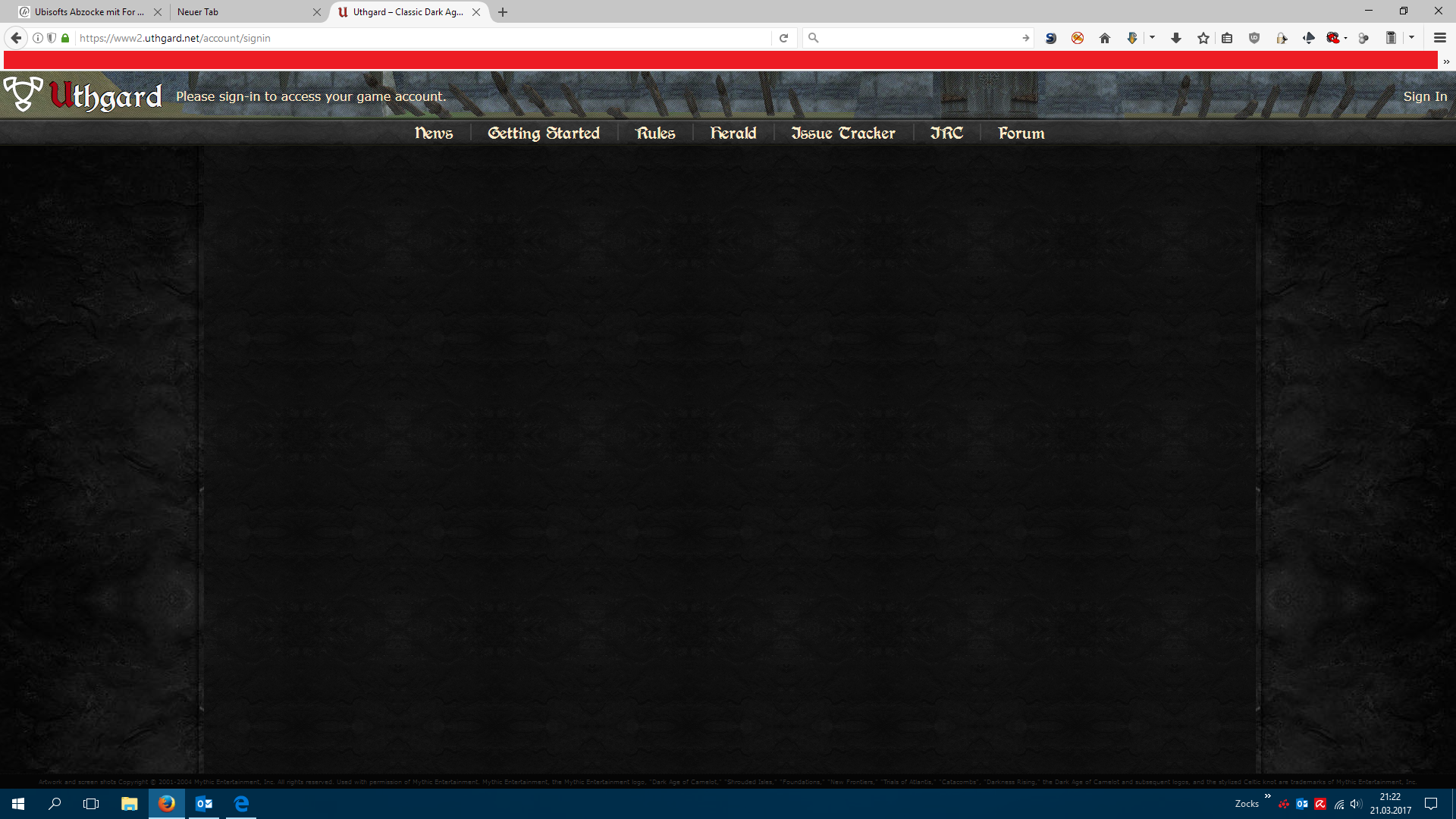 Java Script ist installiert, Uthgard.net und .org sind in der Blocker-Positivliste eingetragen, dennoch bleibt der oben gezeigte Bildschirm, wenn ich mich einloggen will. Bei mir ist es auch ein etwas anders geartetes Problem als bei Enkel: