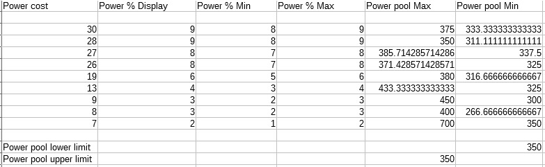 Assuming that the power pool percentage displayed is actually ROUNDED (up or down), the result looks like this: