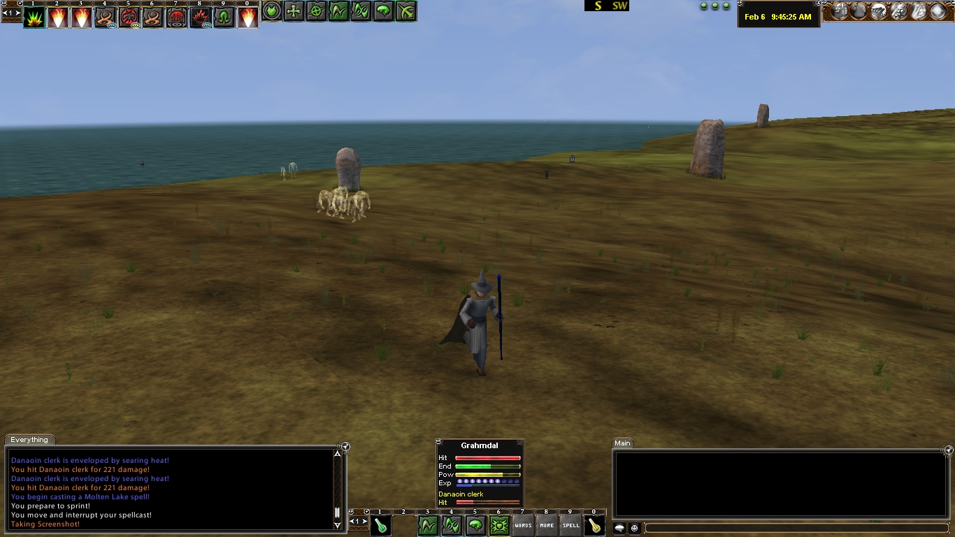 I spec'd to Earth at level 20, and started really enjoying it...in fact the xp from pulling the roman fort can really catapult a wizard to level 25-26 pretty quickly. (The 10 charge potions really help with doing this!) Honestly, Earth spec is pretty fun in a couple places, with having GTAE. You can atually stand behind the roman fort and pull almost the entire inside, then snare nuke as the skellys approach. Sort of a fun rush, and a change from bolt, bolt, dd, dd rest. My wizard is just about to hit 37, and here's a few good spots I've found for using ae snare nuke levelling... If anybody has any ideas where to go from 40-44 please let me know! This spec needs high density camps... 1-20 Just tasks...go fire spec IMO 20-25/26 Roman fort!!! Have some fun. 26-28 I just did trees and stalkers in forest sauvage...no really good AE camps 29 Bwgwls...sometimes they clump and you can pull 5 or so at a time...but usually wound up bolt, bolt, dot, kite 30-32 Frogs near hurb: once again, no brilliant AE camps here...but this is quick...just know the frogs move somewhere between regular speed and sprinting 33-36 Thidranki. Great levelling here...find the clumps. Pull by bolting the Oppungar mob, then AE snare nuke the whole camp...you'll get 5-6 mobs with group bonus. Just pop out at 34.9 and get enough pots to make 36. 36-40 Danaoin Clerks. Pull with a GTAE right in the middle of a pack, and proceed to snare nuke down...up to I think I've gotten 9 of em in a pull. 41-44 No ideas yet... 44-50 I'm going to try and do gobos...gtae right in the middle of the house...we'll see how it goes...this should pick up a lot at 46 with the last snare nuke spell. And some pictures...it's fun times...and the animation of the earth ae nuke is really beautiful: Happy nuking =) |
