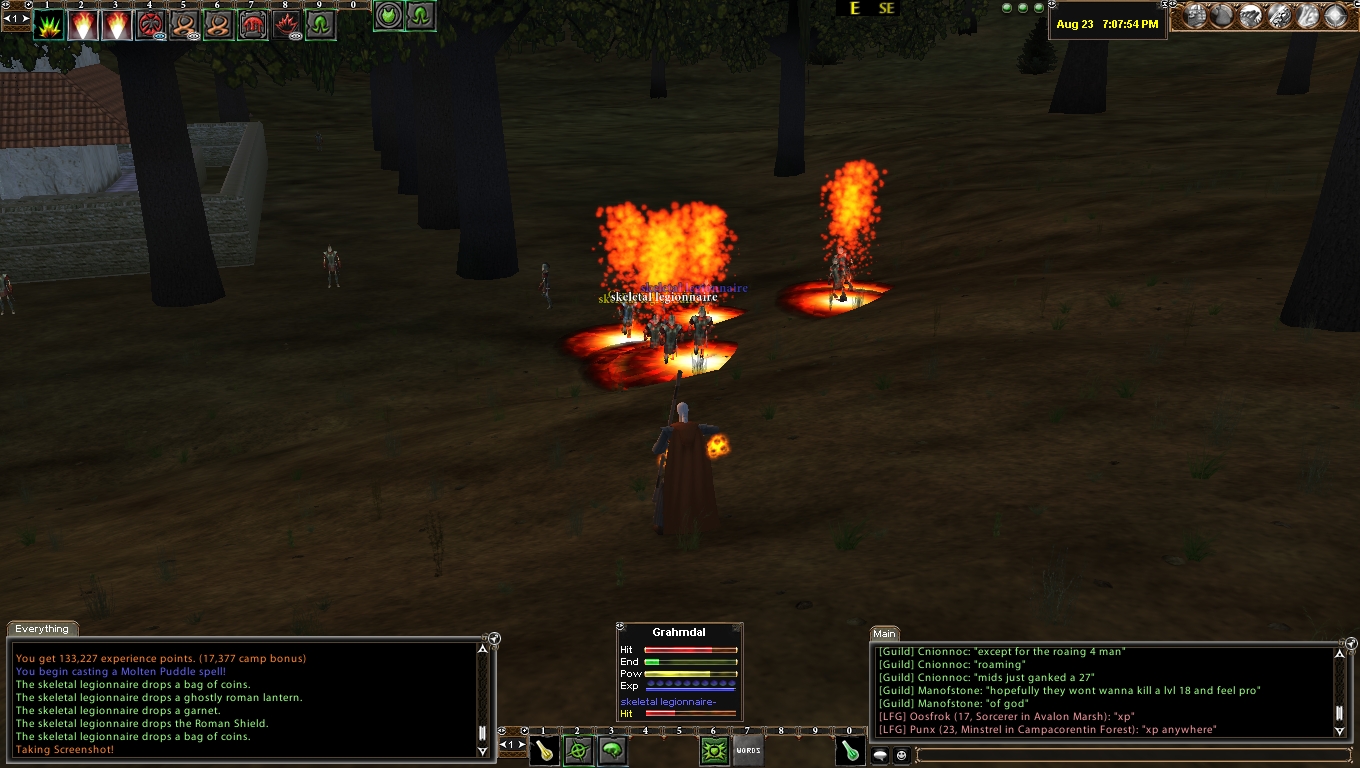I spec'd to Earth at level 20, and started really enjoying it...in fact the xp from pulling the roman fort can really catapult a wizard to level 25-26 pretty quickly. (The 10 charge potions really help with doing this!) Honestly, Earth spec is pretty fun in a couple places, with having GTAE. You can atually stand behind the roman fort and pull almost the entire inside, then snare nuke as the skellys approach. Sort of a fun rush, and a change from bolt, bolt, dd, dd rest. My wizard is just about to hit 37, and here's a few good spots I've found for using ae snare nuke levelling... If anybody has any ideas where to go from 40-44 please let me know! This spec needs high density camps... 1-20 Just tasks...go fire spec IMO 20-25/26 Roman fort!!! Have some fun. 26-28 I just did trees and stalkers in forest sauvage...no really good AE camps 29 Bwgwls...sometimes they clump and you can pull 5 or so at a time...but usually wound up bolt, bolt, dot, kite 30-32 Frogs near hurb: once again, no brilliant AE camps here...but this is quick...just know the frogs move somewhere between regular speed and sprinting 33-36 Thidranki. Great levelling here...find the clumps. Pull by bolting the Oppungar mob, then AE snare nuke the whole camp...you'll get 5-6 mobs with group bonus. Just pop out at 34.9 and get enough pots to make 36. 36-40 Danaoin Clerks. Pull with a GTAE right in the middle of a pack, and proceed to snare nuke down...up to I think I've gotten 9 of em in a pull. 41-44 No ideas yet... 44-50 I'm going to try and do gobos...gtae right in the middle of the house...we'll see how it goes...this should pick up a lot at 46 with the last snare nuke spell. And some pictures...it's fun times...and the animation of the earth ae nuke is really beautiful: Happy nuking =) |